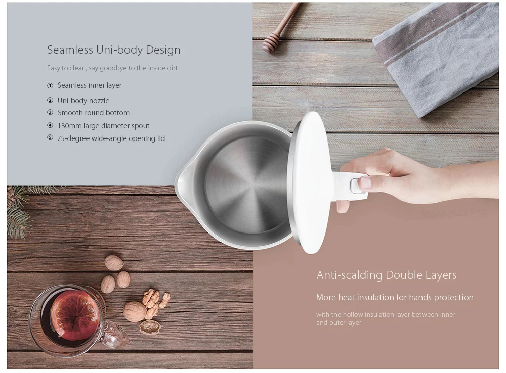 Prevent electric shock, no electric leakage, and auto shutdown while dry operation and boiling.