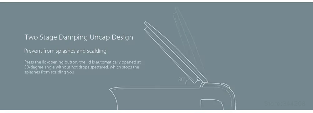 Press the lid-opening button, the lid is automatically opened at a 30-degree angle without hot drops spattered, which stops the splashes from scalding you